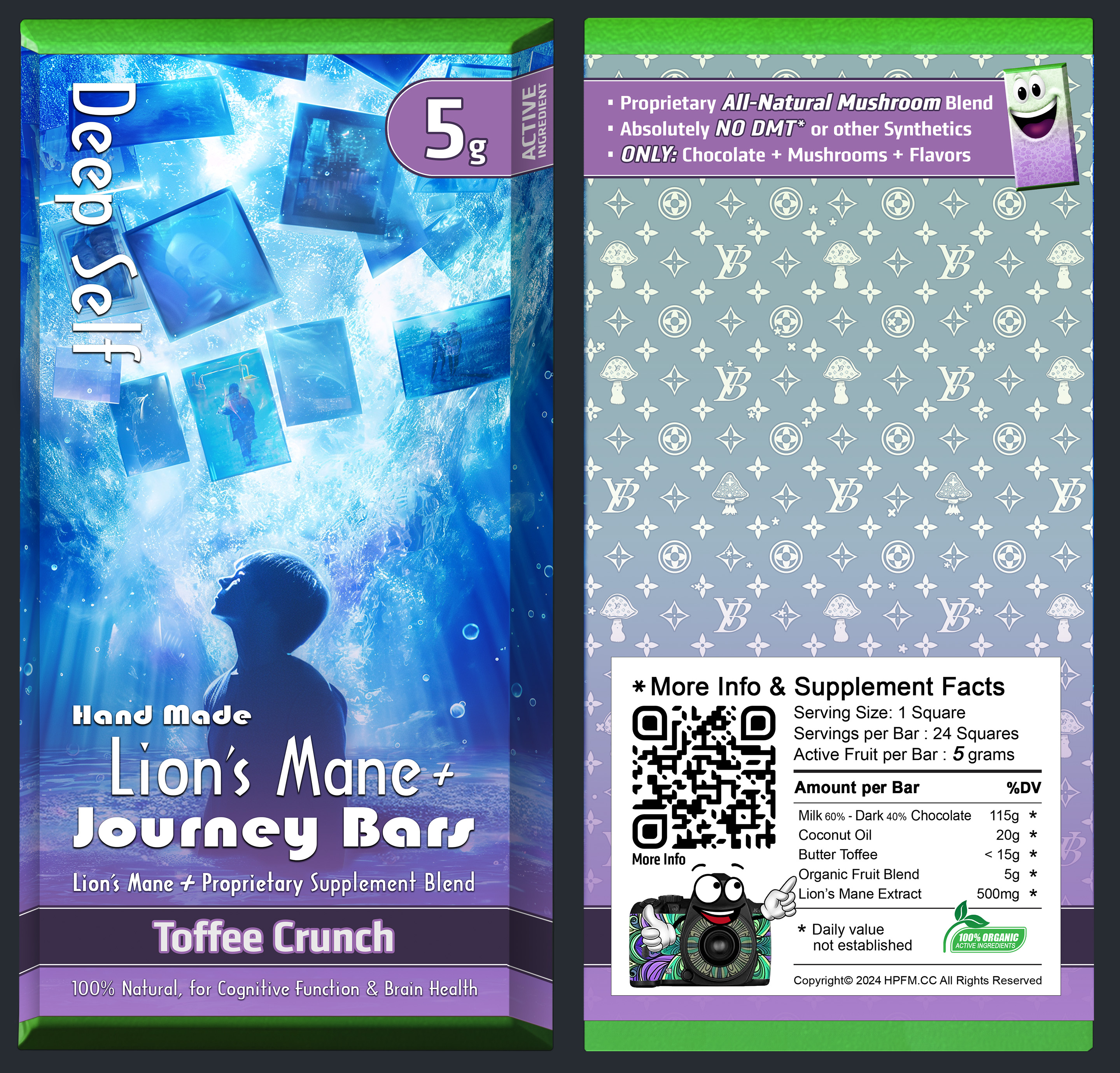 A Chance Encounter and a Generous GiftSo the Story goes..... It was during Silly Cybin's time in Santa Cruz, circa 2014, that he crossed paths with the enigmatic traveler, who shared tales of his mushroom adventures around the world. The traveler recounted his experiences with mushrooms chocolates with a particularly potent strain he had discovered in Panama, claiming they were the best he had ever tried. As a gesture of goodwill, the traveler gifted Silly Cybin a foil spore print, taken straight from his own pocket, which would serve as the future foundation for this captivating hybrid project.
